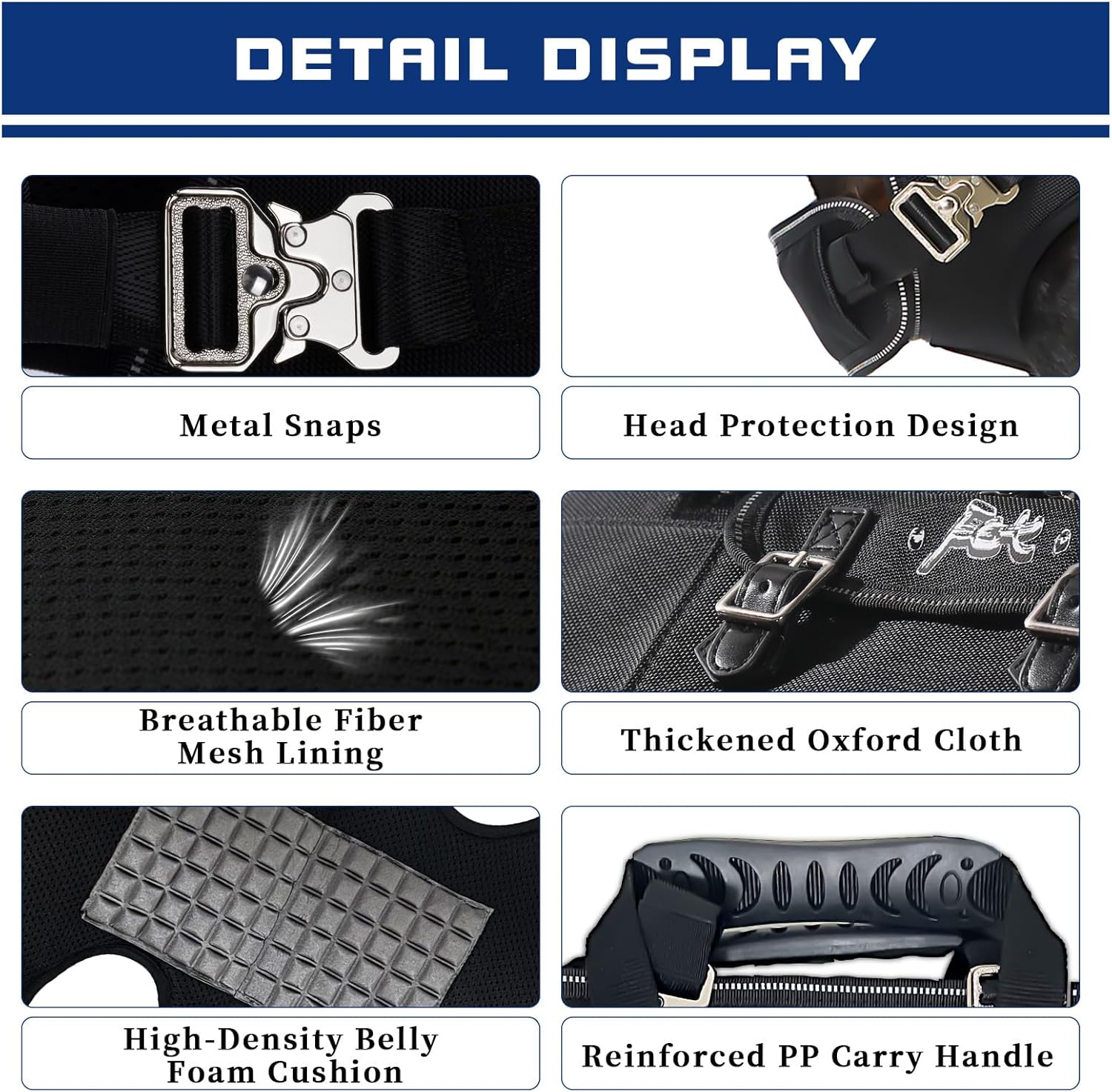 - 【Spine-Friendly Horizontal Design】 The dog backpack carrier’s spine-friendly horizontal design features added head protection and a thickened abdominal foam cushion. This ensures optimal weight distribution, minimizes spinal stress, and delivers maximum comfort and support – especially vital for large breed dogs and senior pets.