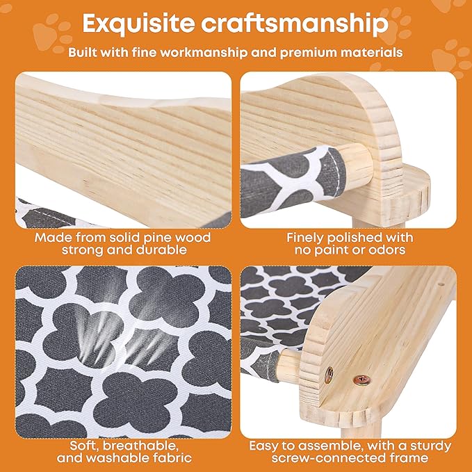 - Breathable & Washable Fabric The soft woven material is breathable, durable, and machine washable, ensuring a clean, fresh lounging area for your pets. Whether used as an outdoor pet bed or cat hammock outdoor, it keeps your pet cool in summer and easy to maintain all year round.Crafted with woven fabric that’s free from harsh chemicals or unpleasant smells, this elevated cat bed is safe and healthy for pets