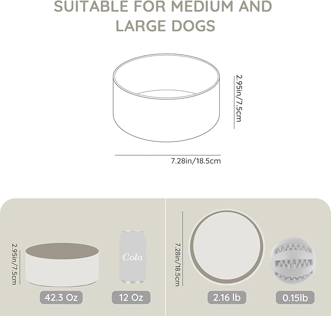 - Capacity AND Size: SPUNKYJUNKY dog bowl is available in 5.2 cups(42 Fluid Ounces) capacity, perfect for different breeds of medium-sized and large dogs
