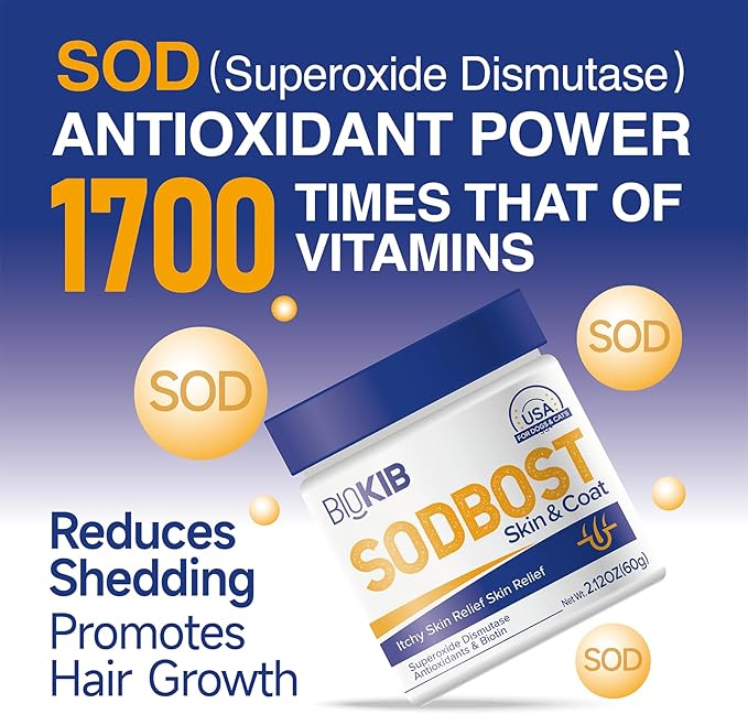 SODBOST Dog Allergy & Itch Relief, Cat Skin & Coat Supplement Powder -SOD Enzyme Skin Relief Formula for Allergy & Itch Relief & Reduces Shedding - Plant-Based, Made in USA - 60 Scoops