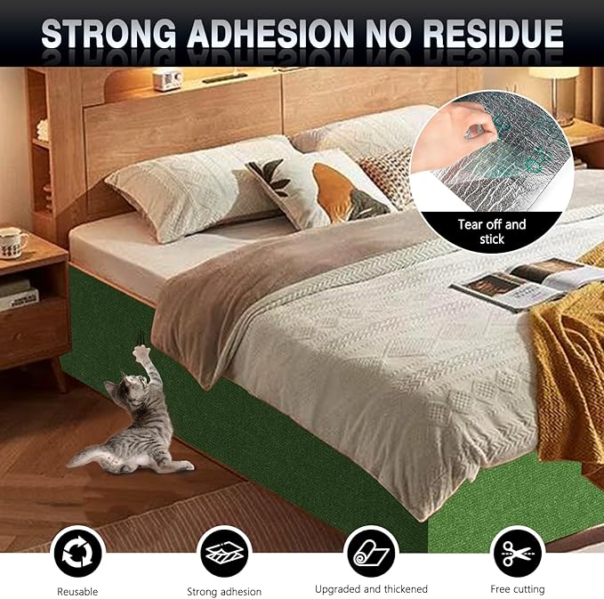 2Pack Total 78.7"x15.8" Cat Scratch Mat for Cat Couch Furniture and Wall Protector | Trimmable Self-Adhesive Carpet Climb Cat Scratcher for Covering Cat Tower and Replacement Pads (Green)