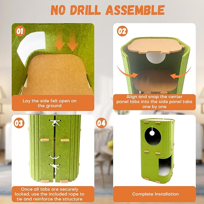 - Sturdy & Safe Construction: Reinforced structure supports cats up to 22lbs (10kg). Premium felt passed rigorous weight tests – no collapses during leaps or play. A secure cat hideout for energetic kitties