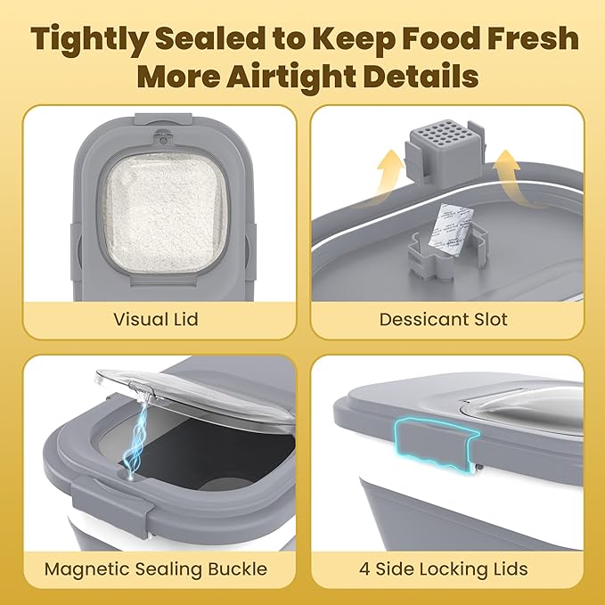 - High Quality Material:This pet food storage container is made of BPA-free PP material-food-grade materials, suitable for storing various dry foods such as rice, flour, grains, and pet food for dogs and cats.