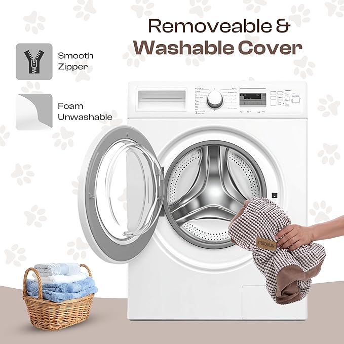 - Fully Washable Cover – Soft upholstery zip cover slips off for machine wash; breathable velvet tread grips paws even when wet.