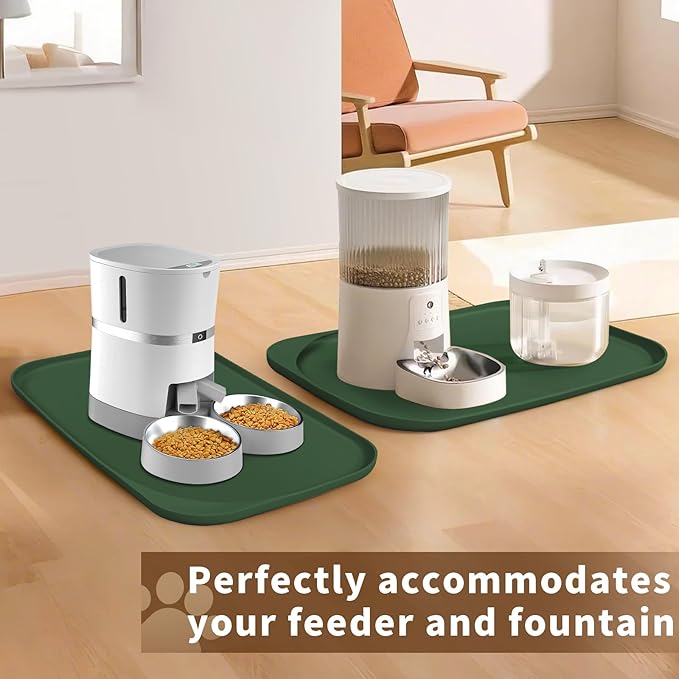 - Widely Used - The anti slip dog food spill mat with high sides can also be used under pet water fountain, automatic feeder, and litter boxes to help contain messes and protect floors. Use as boot mat, shoe matt tray for entryway, pet water splash mat, dog water bowl drip pan. Can also be used for dog crate, trash can, pet water dispenser, countertop, plant, fish tank.