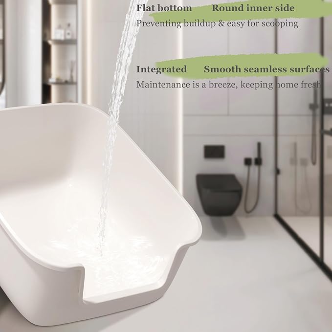 - Durably Constructed: No more hassle with assembly or intricate setup steps. Vealind open top entry litter box is designed for your convenience. Enjoy hassle-free assembly without the need for tools, saving you precious time and effort. It's ready for use right out of the box, making your life easier