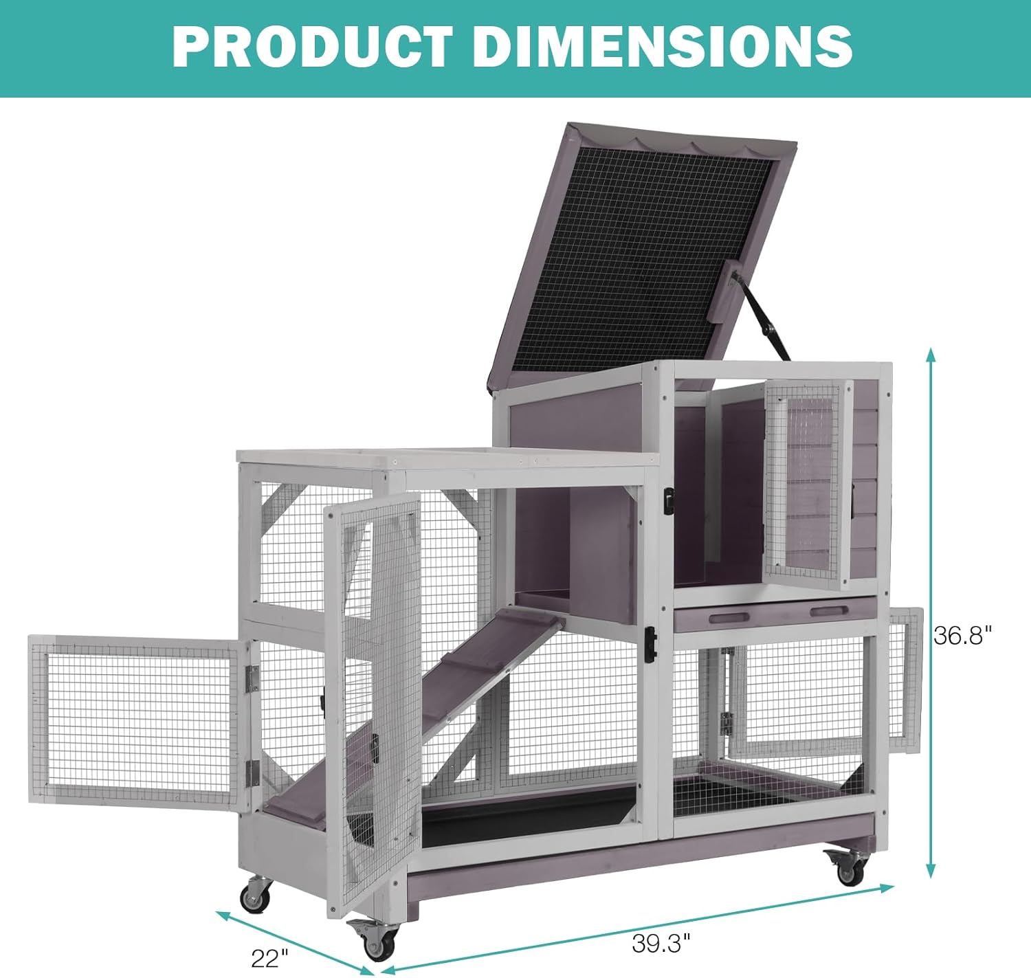 - Effortless Cleaning & Accessibility: Both levels feature slide-out plastic trays for quick waste removal, while the foldable front door, removable roof, and 4 full-access doors let you easily interact with pets, refill food, or clean every corner without hassle