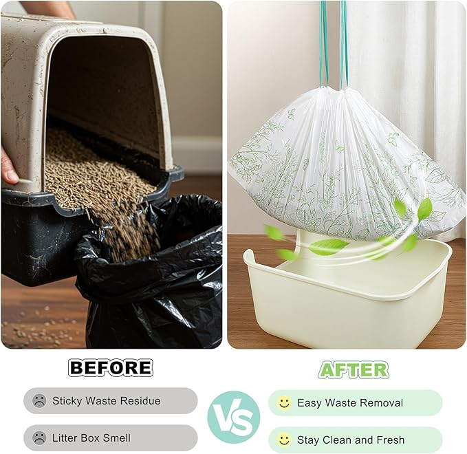 - Drawstring Closure: The cat box liners is equipped with a thickened drawstring, which can be closed by lightly pulling, avoiding direct contact between hands and cat litter and excrement, and making the use process more hygienic; After sealing, it can also reduce odors and keep the indoor air fresh