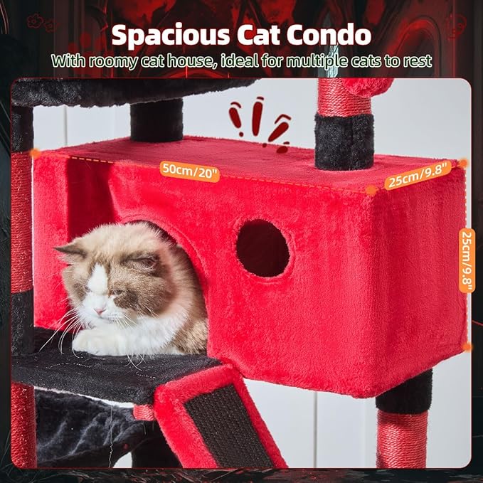 - Multiple Resting Choices: The cat condo provides a private space option for your cat, with a top perch for the cat to see the scenery in the distance, and a sturdy cat hammock for the cat to both rest and observe the surrounding environment.It is the perfect cat tree after a day of cat play.