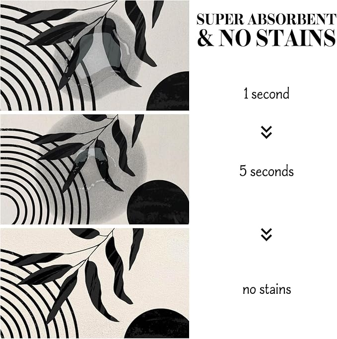 - Super Absorption: The dog mat for water bowl can absorb spilled water without leaving traces and dry quick, avoid wetting pet paws even for messy drinkers. And it does not attract pet hair like traditional silicone dog bowl mat.
