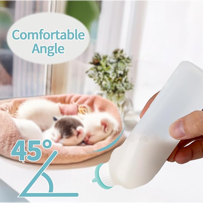 - 【Anti-Choking Design】:The curved neck of kitten bottle make easy to feeding puppy,kittens, and the style could facilitates a constant flow of milk into the teat, effectively reducing abdominal bloating from swallowing air while feeding.