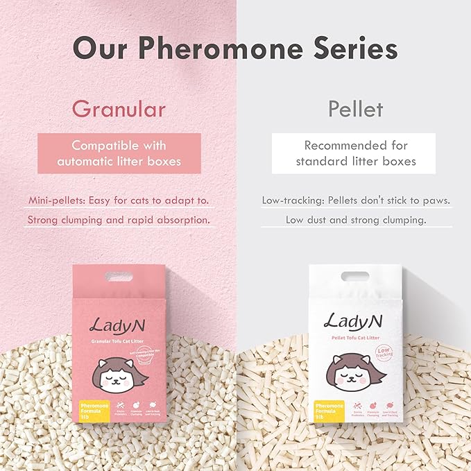 Lady N Cat Attract Tofu Litter – Natural Attractant Formula for Litter Box Training, Calming Pheromone for Multi-Cat Homes, Classic Pellet Shape for Standard Litter Box, 18lb