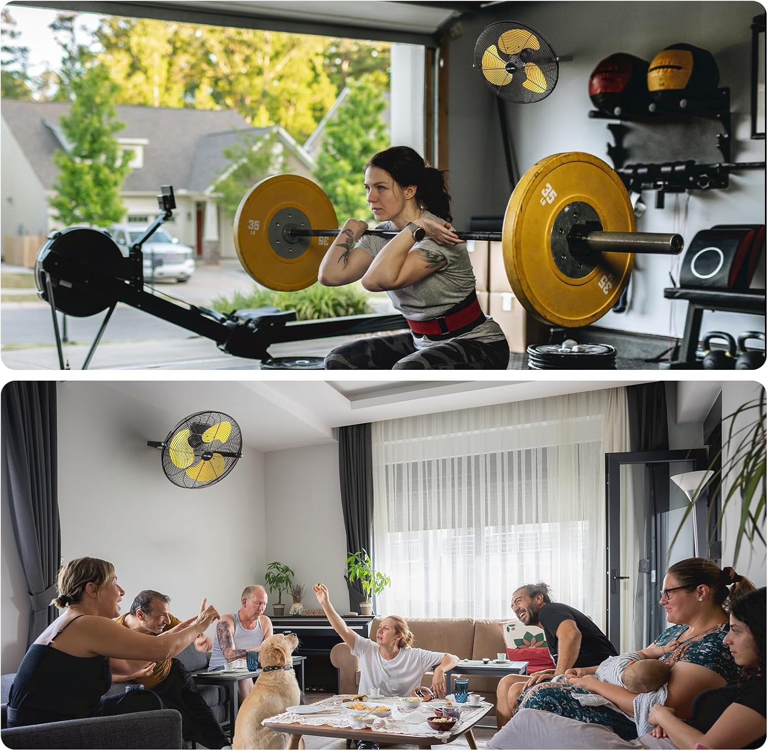 - 180°Tilt Airflow Control: Achieve the better cooling with this wall mounted fan's 180° vertical tilt feature, allowing you to direct the airflow precisely where it's needed. You can enjoy the versatile air circulation for all-season comfort. This is an industrial wall mounted fan, the noise is slightly louder than home fans, but less noisy than most of the same size industrial fans
