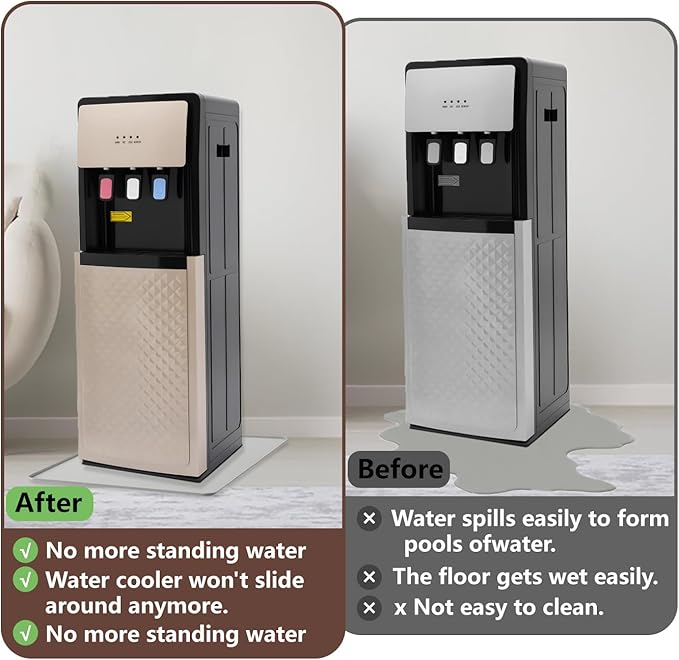 - 【Anti-slip Design】The back layer of the water cooler dispenser mat is anti-slip and waterproof enough. The refrigerator mat not only prevents water from flowing on the floor, but also prevents the mat from moving while also reducing vibration and noise, making it highly practical