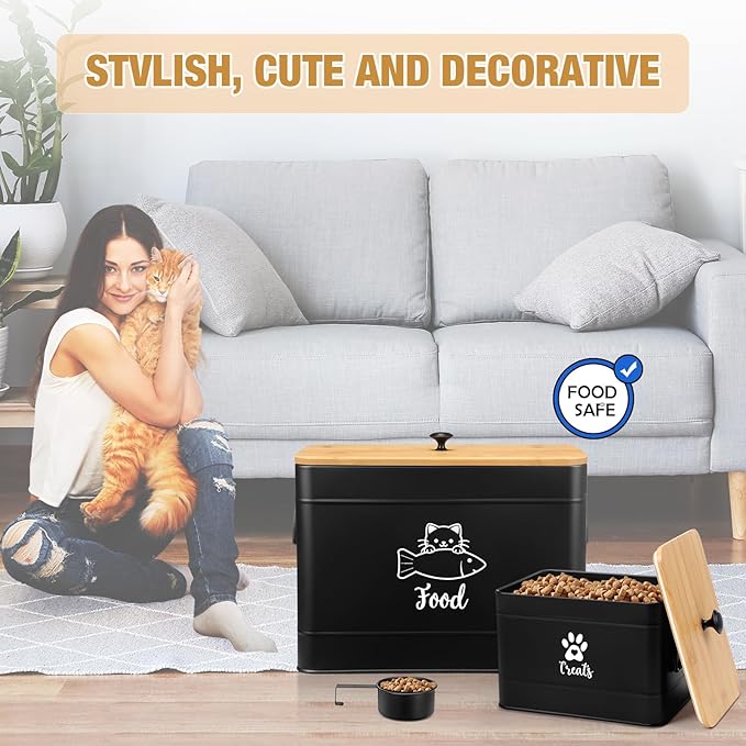 - Practical Design: airtight bamboo lid keep pet food fresh and dry, and make sure that treats are easy to access for you yet sealed for your pet; The decorative cat food canister set is equipped with a spoon, meet your various needs, such as dry and wet food separation; And the decorative pet food container comes with replaceable sealing rubber ring, if you think the current sealing effect of the lid needs to be improved, you can try using the spare sealing ring
