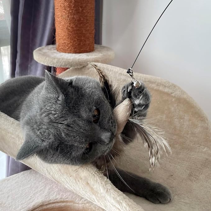 - 【Creative design】The shape of feather toys is Birds, they make cats full of curiosity. Swing the feather ""bait"" to get the cat excited, trigger the ""hunting instinct"", let them run and jump like wild animals, and make your cat go crazy with joy!