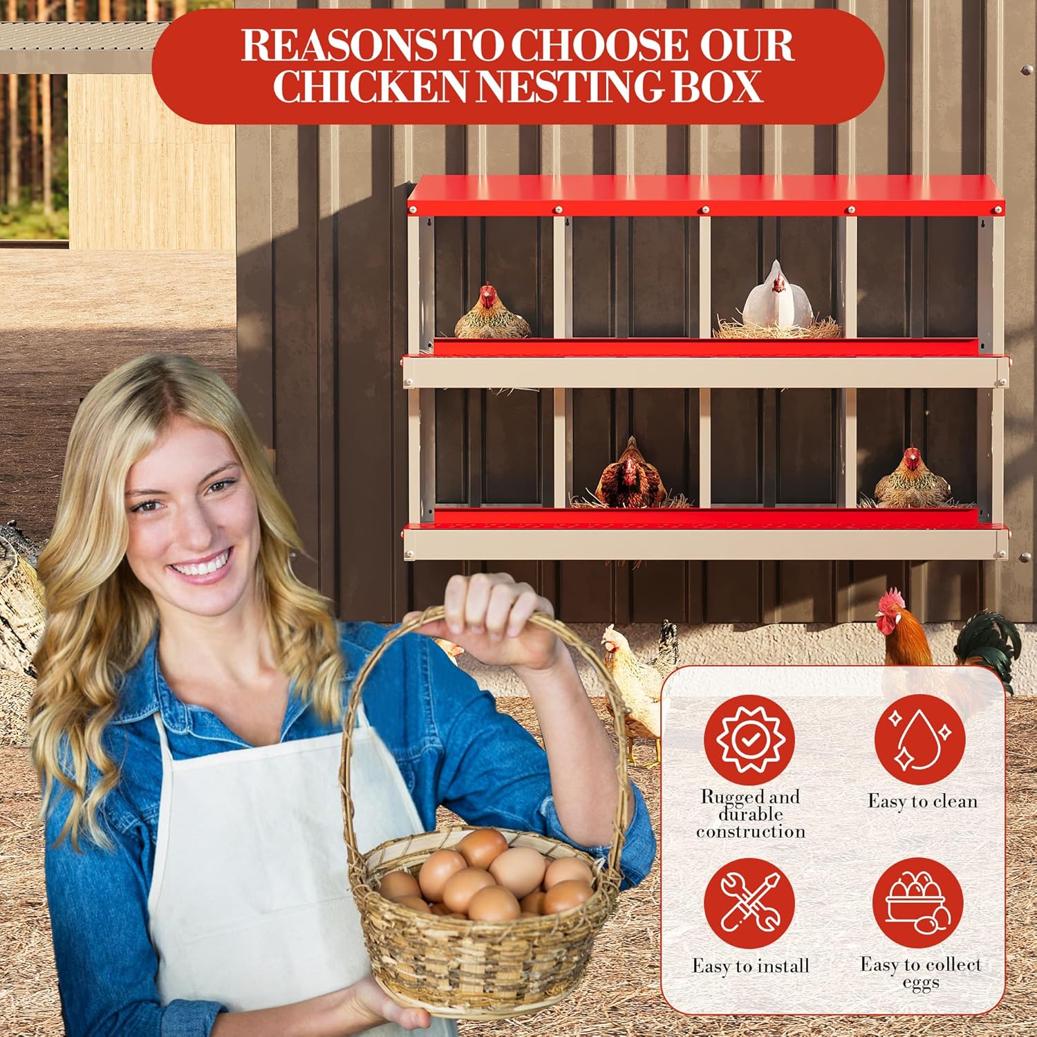 • Ready in Minutes, No Fuss Needed‌: Chicken laying boxes comes with pre-drilled holes and all hardware for tool-free setup—you’ll have this sturdy nesting box ready for your flock in under 20 minutes