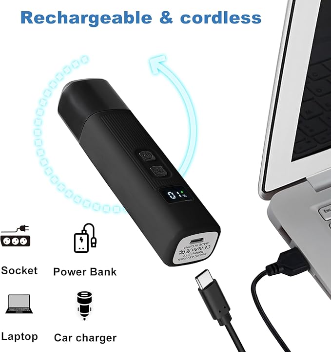 - 【Rechargeable & Cordless】:Equipped with a USB cable that can be conveniently connected to an outlet, laptop, or rechargeable charging treasure for charging. Anytime, anywhere use!