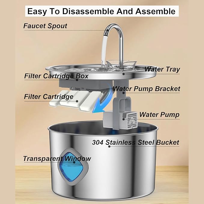 - 304 Stainless Steel, Clutter-Free Homes - Place this sleek stainless steel fountain anywhere—no mess. Perfect for modern apartments or homes where clean lines matter. Keep your pet hydrated without sacrificing style