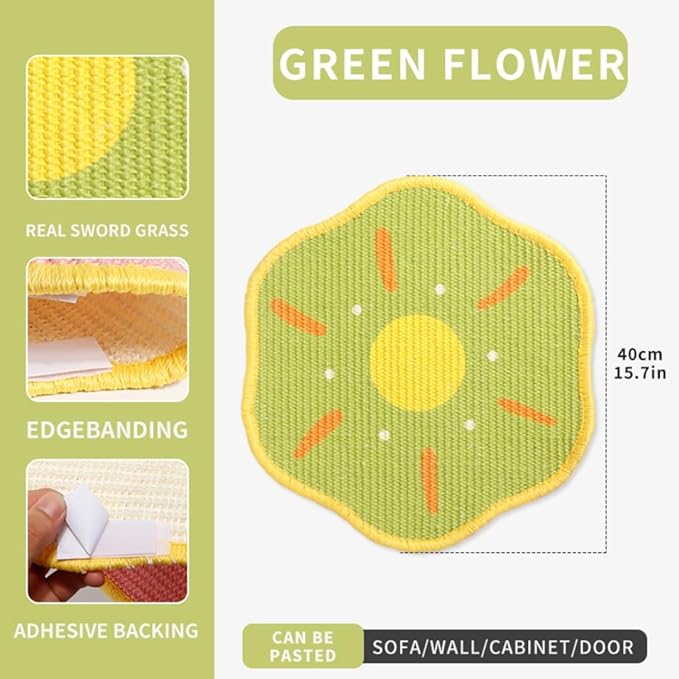 Sisal Cat Scratching Mat β Anti Scratch Furniture Protector for Walls, Couches, Cabinets, Doors & Carpet, 15.7x15.7 Inch, Shedding-Resistant Cat Scratcher with Hook and Loop Fastener (Light Green)