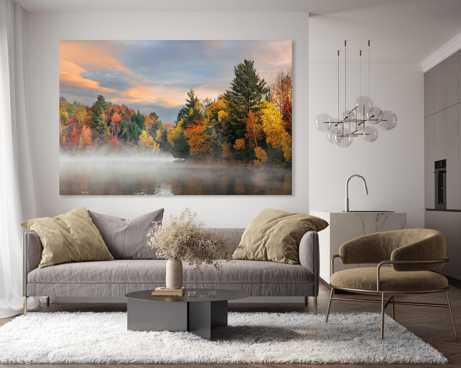 Nature Wall Art Prints - Ocean Forest Mountain Lake Canvas Landscapes - Small to Extra Large Living Room Bedroom Kitchen Bathroom Décor (Misty Fall Reflection, 31L" x 47W")
