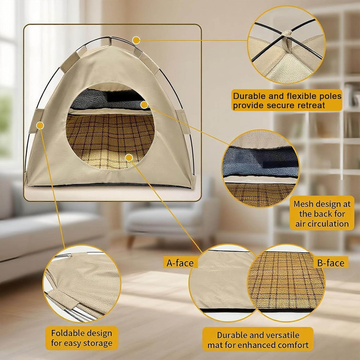 - [Mesh Window Fresh Air Visibility] -- A front-facing mesh panel keeps air circulating and lets curious pets peek out safely while lounging.