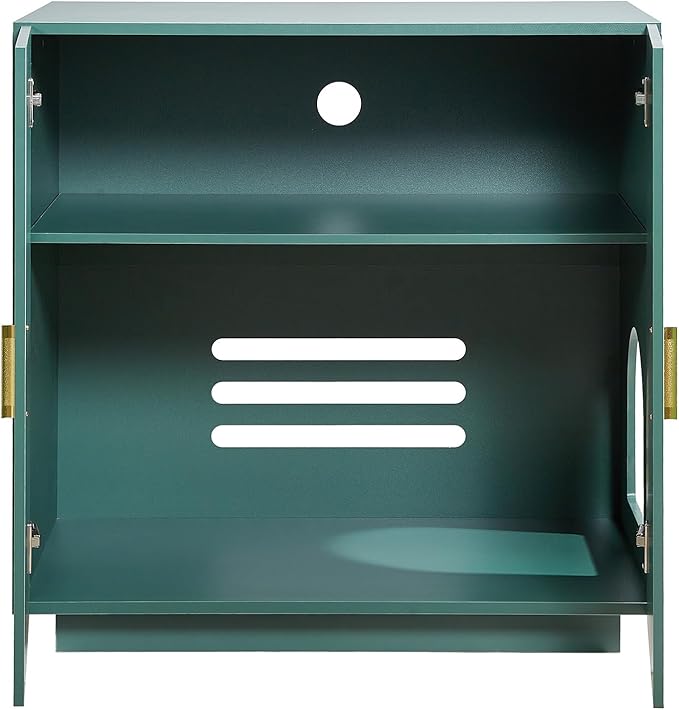 - Stylish & Multi-Functional: This wooden litter box enclosure in vintage dark green finish, with gold metal handles for a touch of luxury that blends with various interiors. The sturdy top doubles as a side table, storage cabinet, or cat bed. Versatile uses, both beautiful and practical.