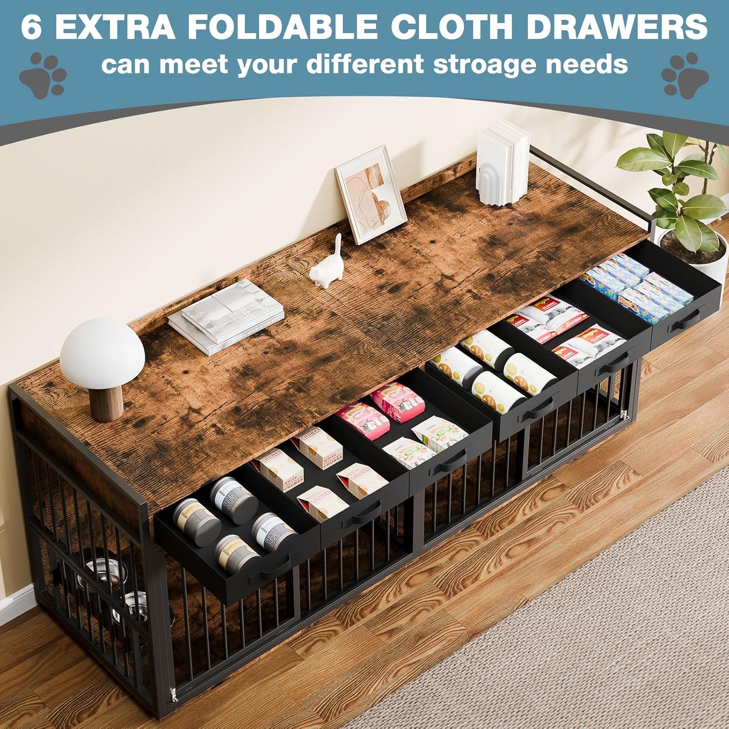 - 【FURNITURE-STYLE DOG CRATE】A large desktop can meet the daily storage needs,can be used as a side table,TV stand,display stand,and 6 foldable cloth drawer organizers to provide additional storage space.Classic country vintage style is both beautiful and practical.