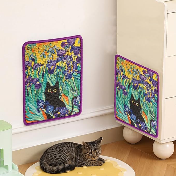 Sisal Cat Scratching Mat β Anti Scratch Furniture Protector for Walls, Couches, Cabinets, Doors & Carpet, 15x11.8 Inch, Shedding-Resistant Cat Scratcher with Hook and Loop Fastener (Flower Field)