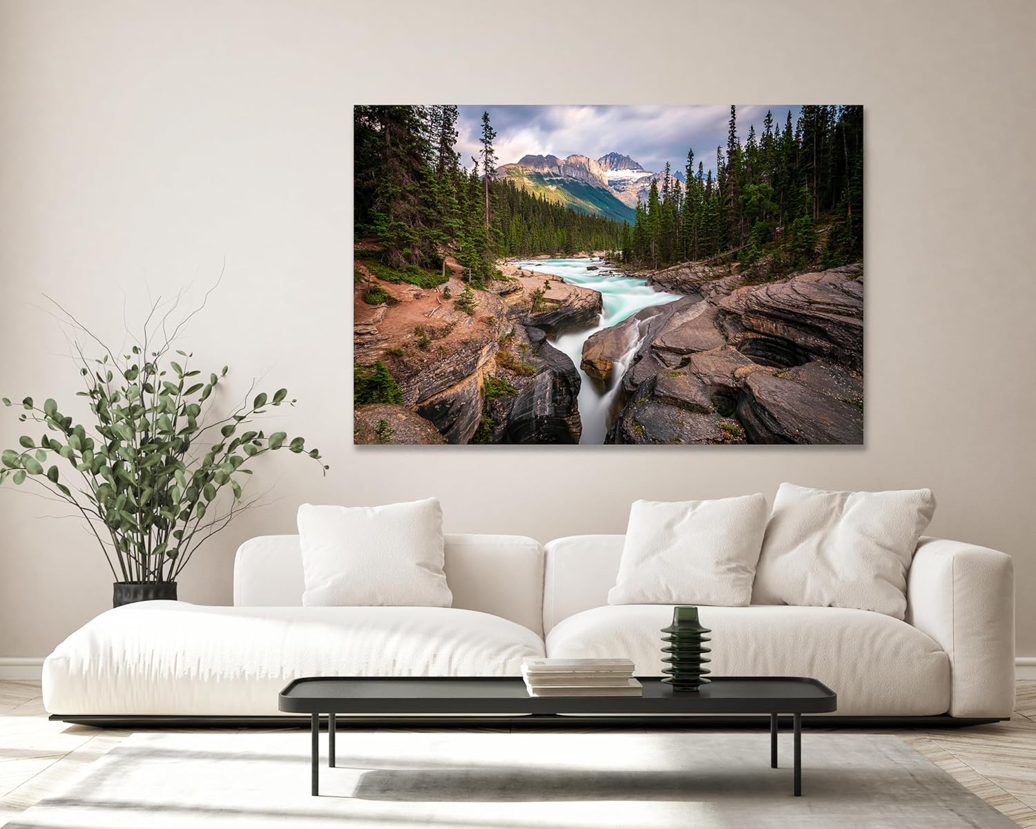 Nature Wall Art Prints - Ocean Forest Mountain Lake Canvas Landscapes - Small to Extra Large Living Room Bedroom Kitchen Bathroom Décor (Mountain River Waterfall, 20L" x 30W")