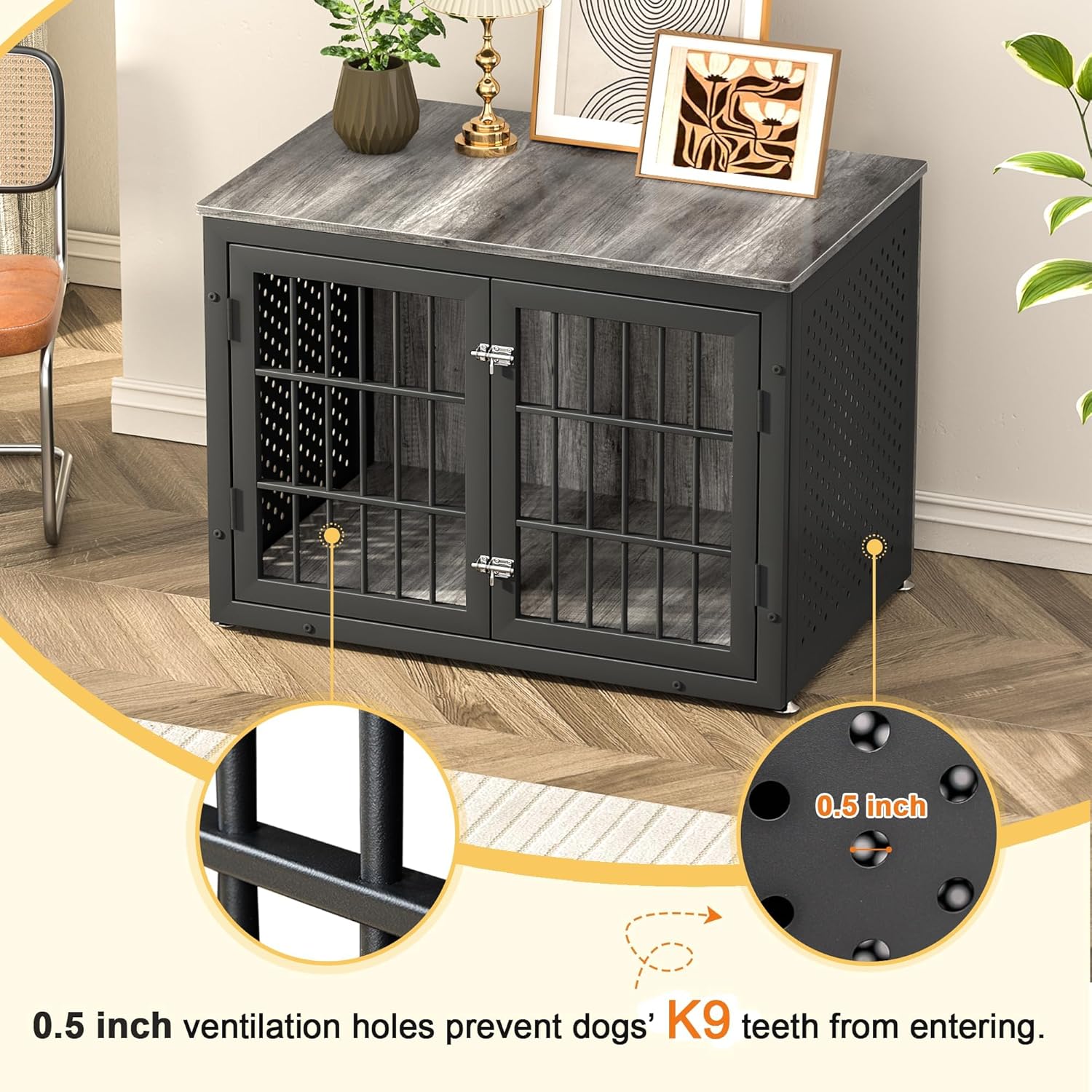 - 【Furniture-Style】: This dog crate can be used as an End Table that seamlessly blends with your home decor. It serves as elegant furniture while providing your pet with a secure retreat.