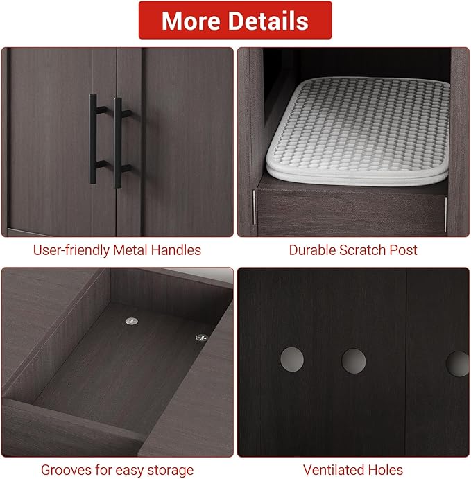 - Convenient storage: We understand the importance of organization. That's why our cat litter cabinet incorporates a groove in the middle section, serving as a storage compartment for canned cat food and other supplies. This practical design element not only maximizes storage space but also promotes a tidy and orderly environment.