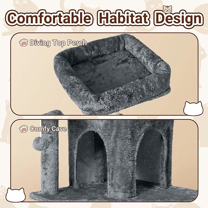 - Easy Assembly: This multi-level cat tree comes with detailed instructions for quick and hassle-free setup, so your cats can instantly explore their new playground right away.